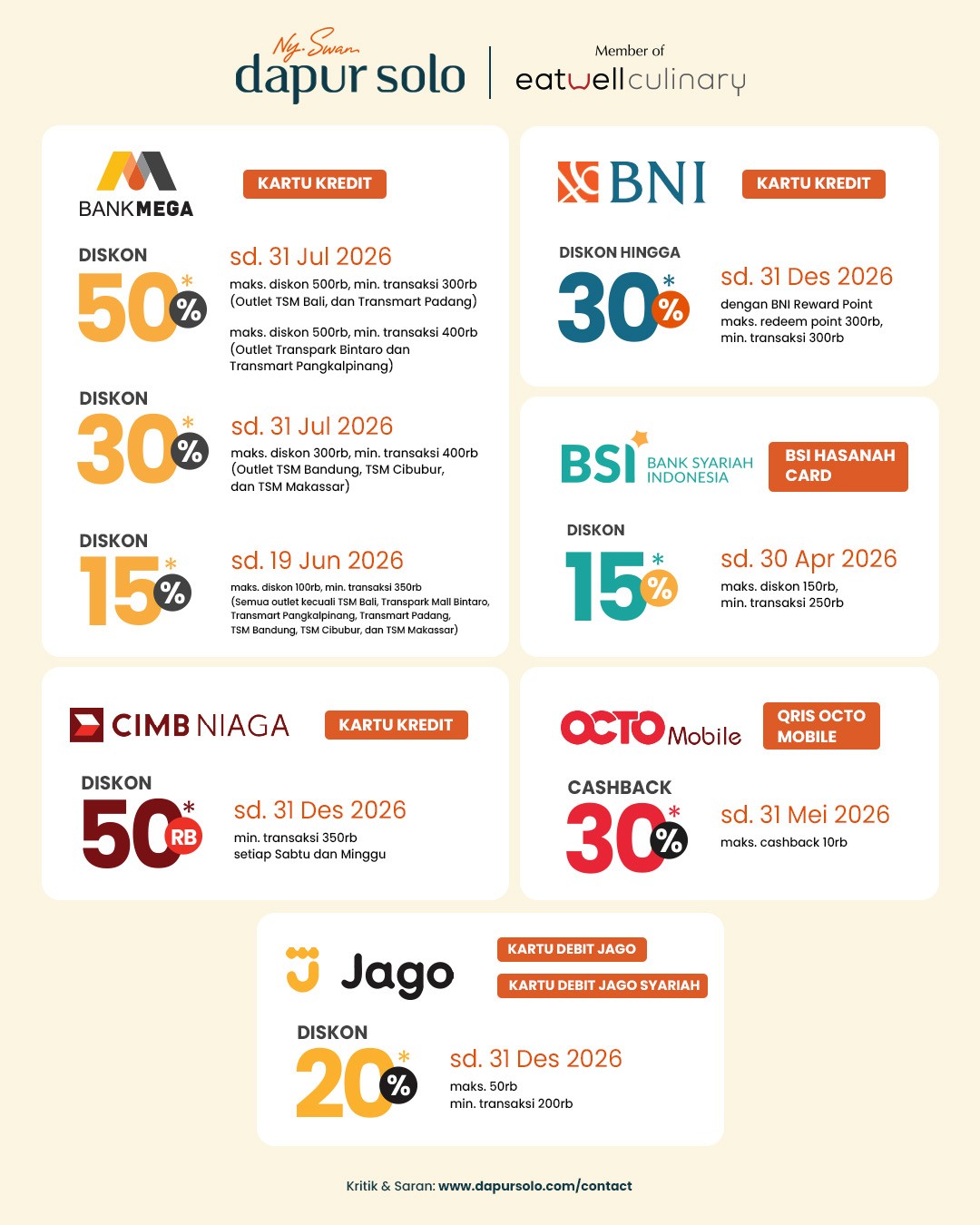 * Tersedia di seluruh outlet Dapur Solo terdekat di kotamu