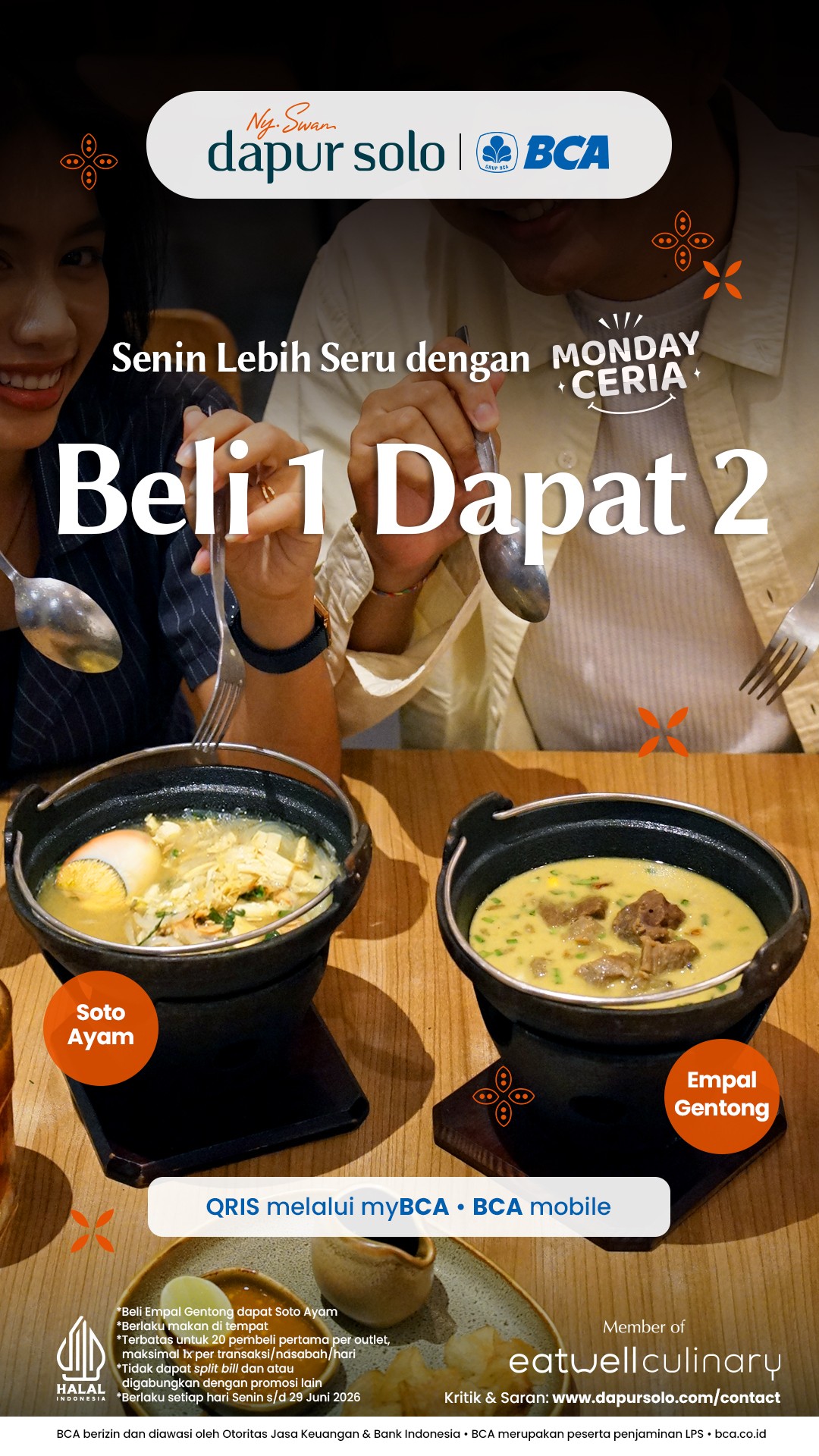 Yuk, makan siang tanpa ribet! Nikmati Empal Gentong GRATIS* Soto Ayam dengan pembayaran pakai QRIS BCA✨